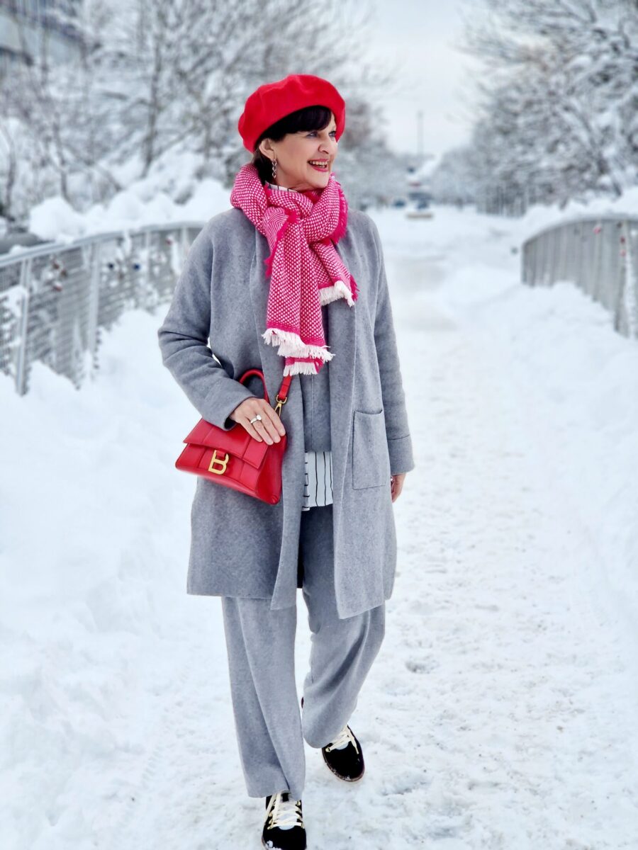 Nun aber zu Deinen Styling-Ideen: Das graue Ensemble von Tag 1 ist mein erster Favorit, besonders wie Du es wieder toll kombiniert hast mit den roten Accessoires. Was ähnliches habe ich mir für morgen ausgedacht, da geht es mit einer Freundin zum Shoppingbummel. Bisschen auf frühe Schnäppchenjagd, bevor wieder alles Schöne weg ist…