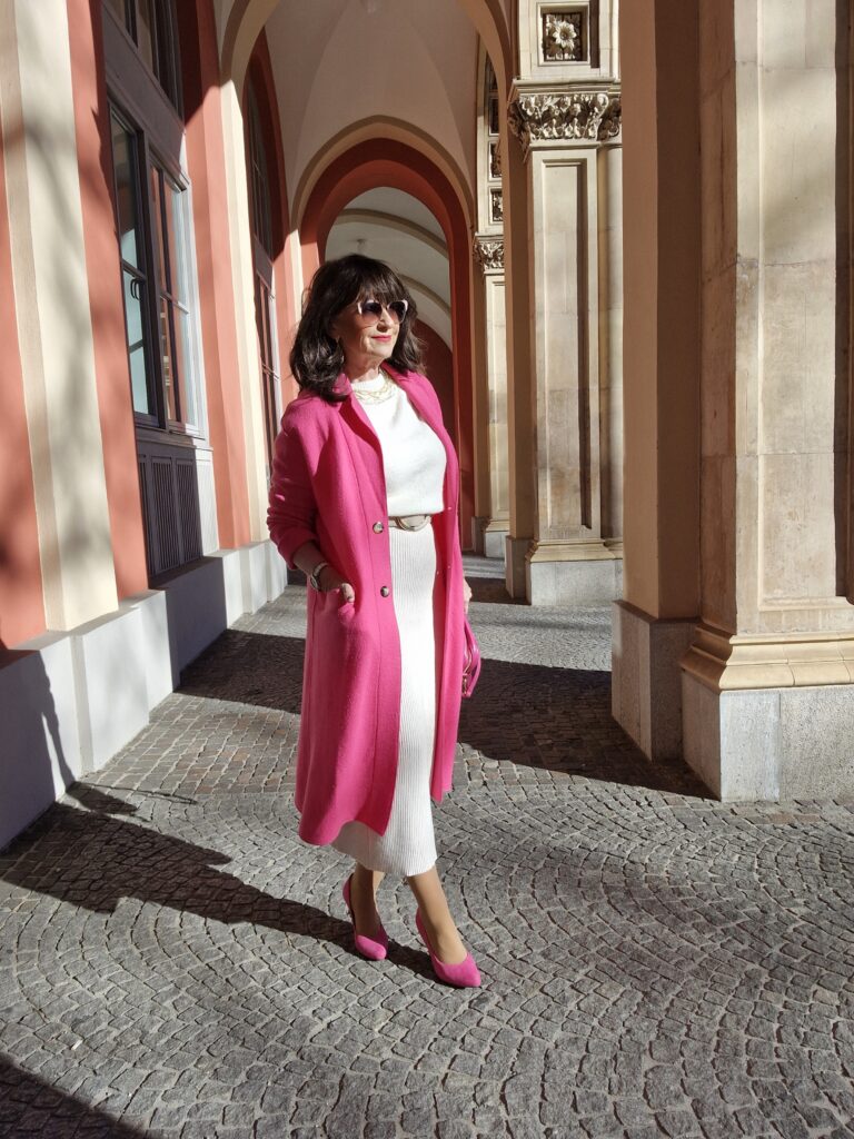 Eine gute Wahl hast Du mit dem pinken Strickmantel getroffen, ich liebe diese Kombination. Aber natürlich auch alle anderen, sonst würde ich sie nicht präsentieren. Der Rock ist wunderbar und so weiblich – das sollten wir uns ab und zu gönnen.
