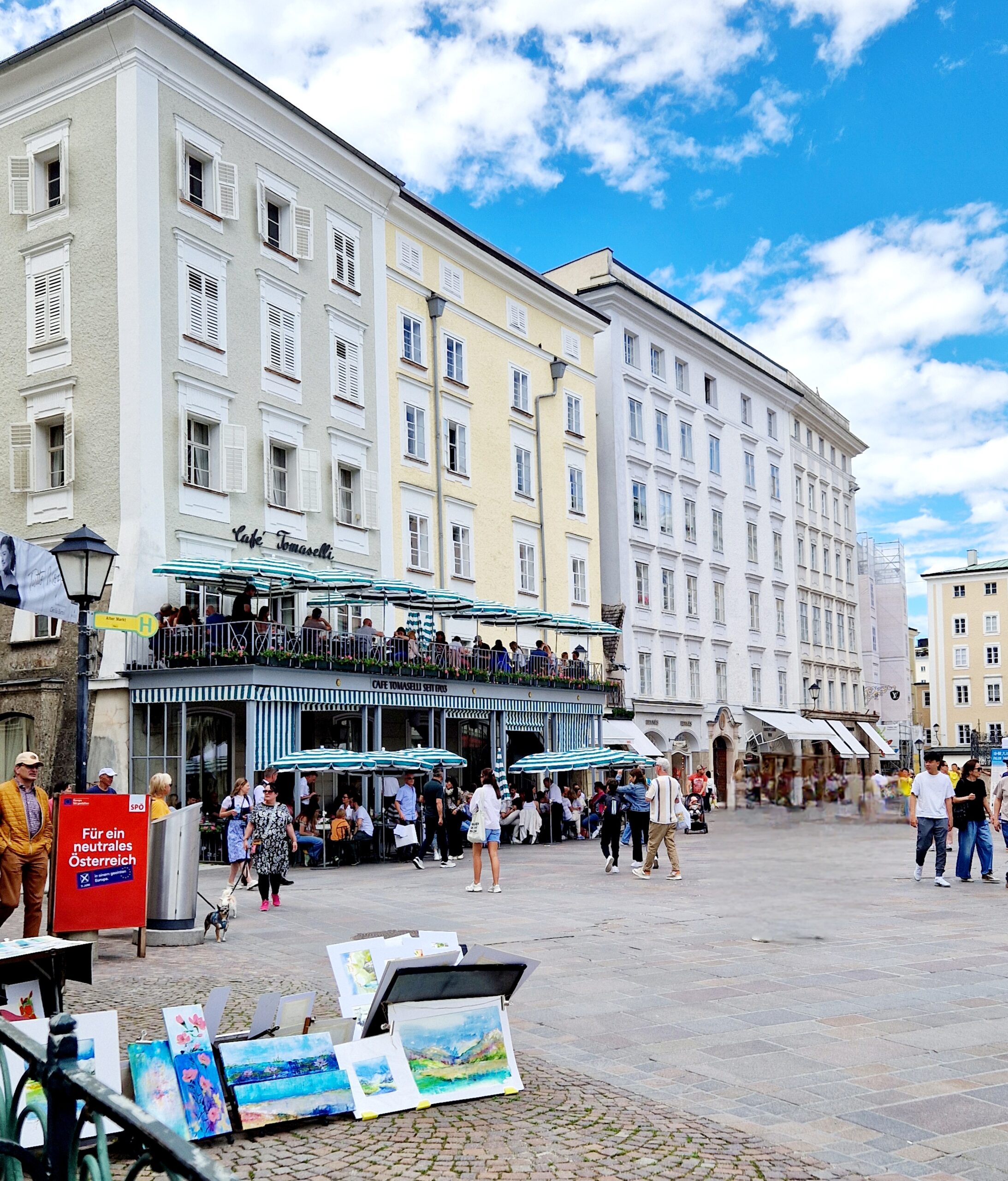 Die Auswahl an charmanten Kaffeehäusern und Restaurants ist vielfältig. Geschmäcker sind ja bekanntlich sehr verschieden. Und wenn Du mich nach meinem liebsten Kaffeehaus fragst, dann nenne ich immer das Café TOMASELLI – angeblich war schon Mozart zu Gast und hat die vorzüglichen Speisen genossen.