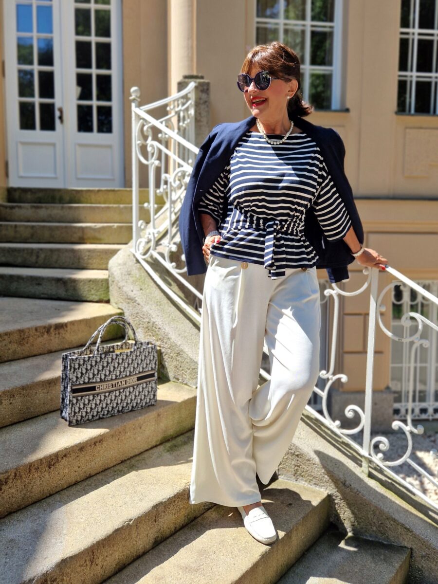 Liebe Martina, heute hast Du genau meinen Geschmack getroffen mit Deinem Blog. Ich liebe den maritimen Look, da ich am liebsten ans Meer fahre. Aber ich trage auch zu Hause oft diesen Look. Deine weiße Hose ist besonders schön. Eine ähnliche habe ich mir gerade in blau gekauft. Mit Accessoires kann man so viel bewirken, das habe ich nicht zuletzt auch aus Deinem Blog gelernt. Für die vielen inspirierenden Ideen sage ich hiermit mal Dankeschön ☺️.
