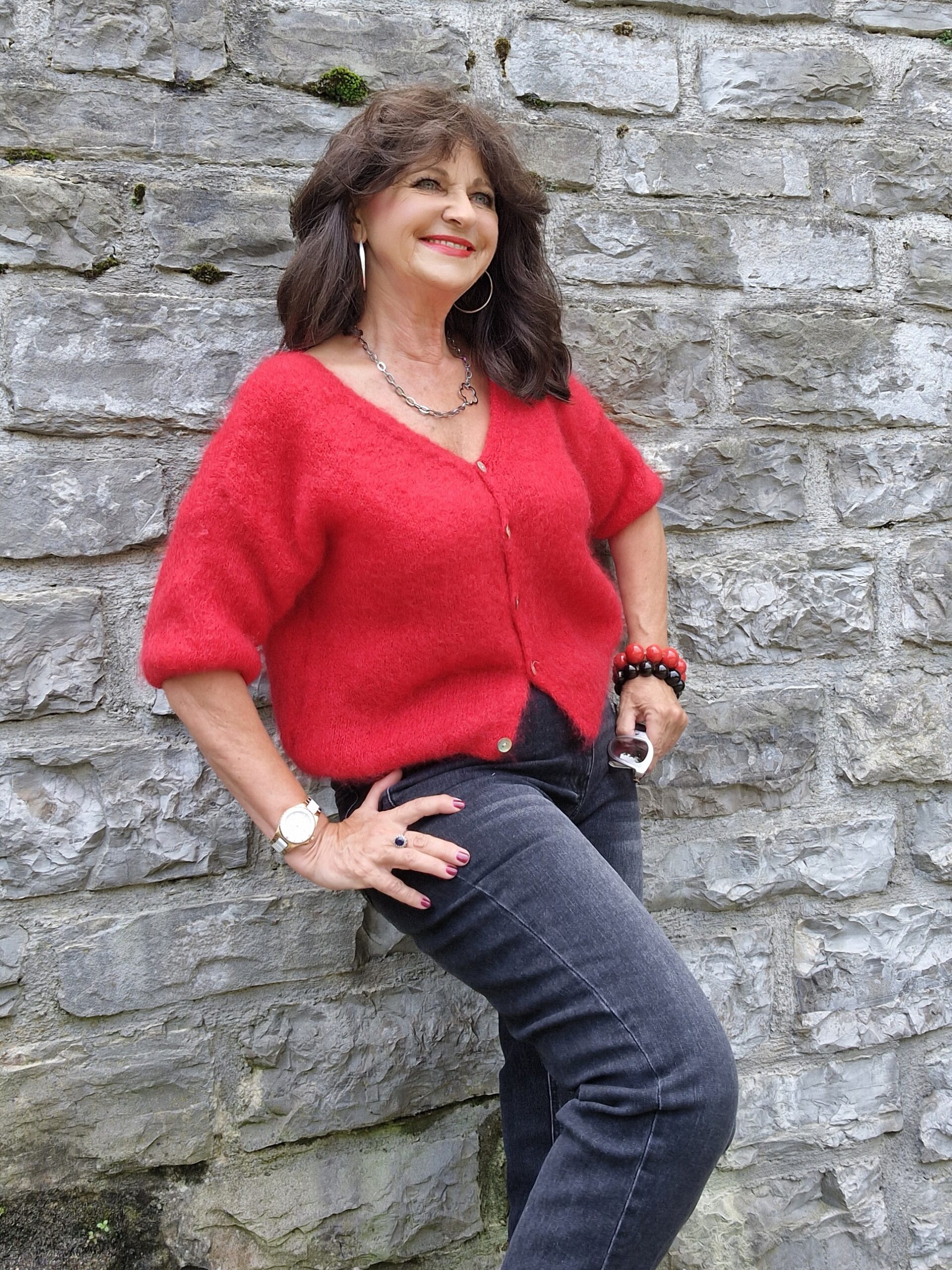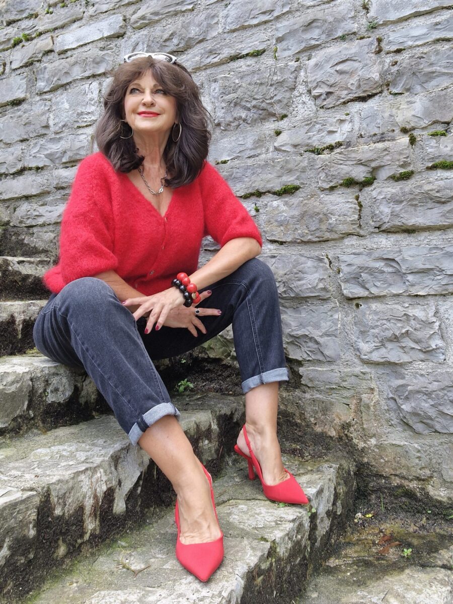 Für einen entspannten Freitag wähle ich einen Casual-Chic-Look, den ich für einen Casual Friday genauso gut im Office tragen kann wie nach dem Büro zum Treffen in der Stadt. ROT ist ein Trendthema im Herbst. Rot sollte als Oberteil, Accessoires oder Hose gewählt werden. Deshalb habe ich die rote Jacke VADELINA als It-Piece für diesen Look ausgewählt. Sie ist aus 80 % Kid-Mohair und in 8 Farben erhältlich.