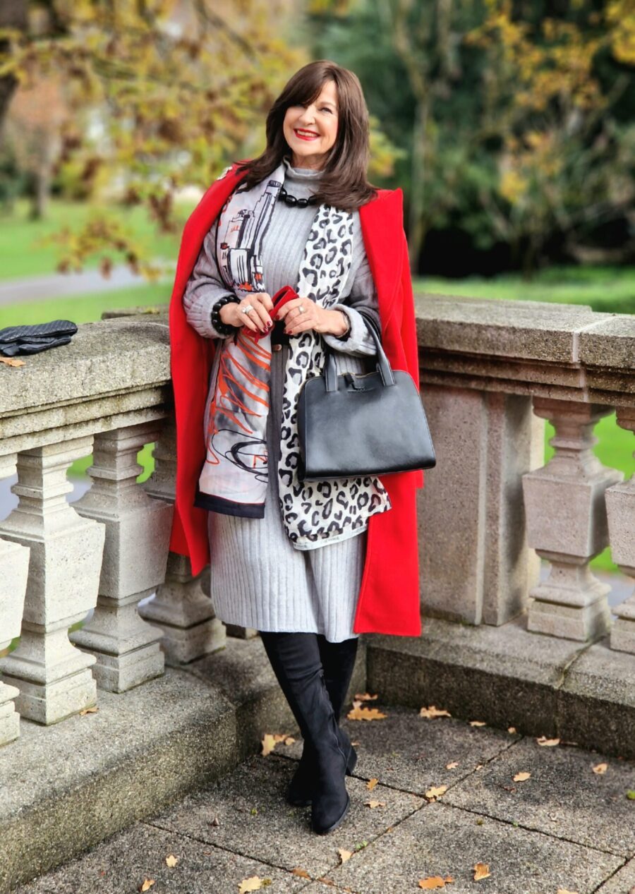 Ein graues Strickkleid habe ich sogar, das helle gefällt mir im Beitrag besser. Der rote Mantel ist besonders schön.