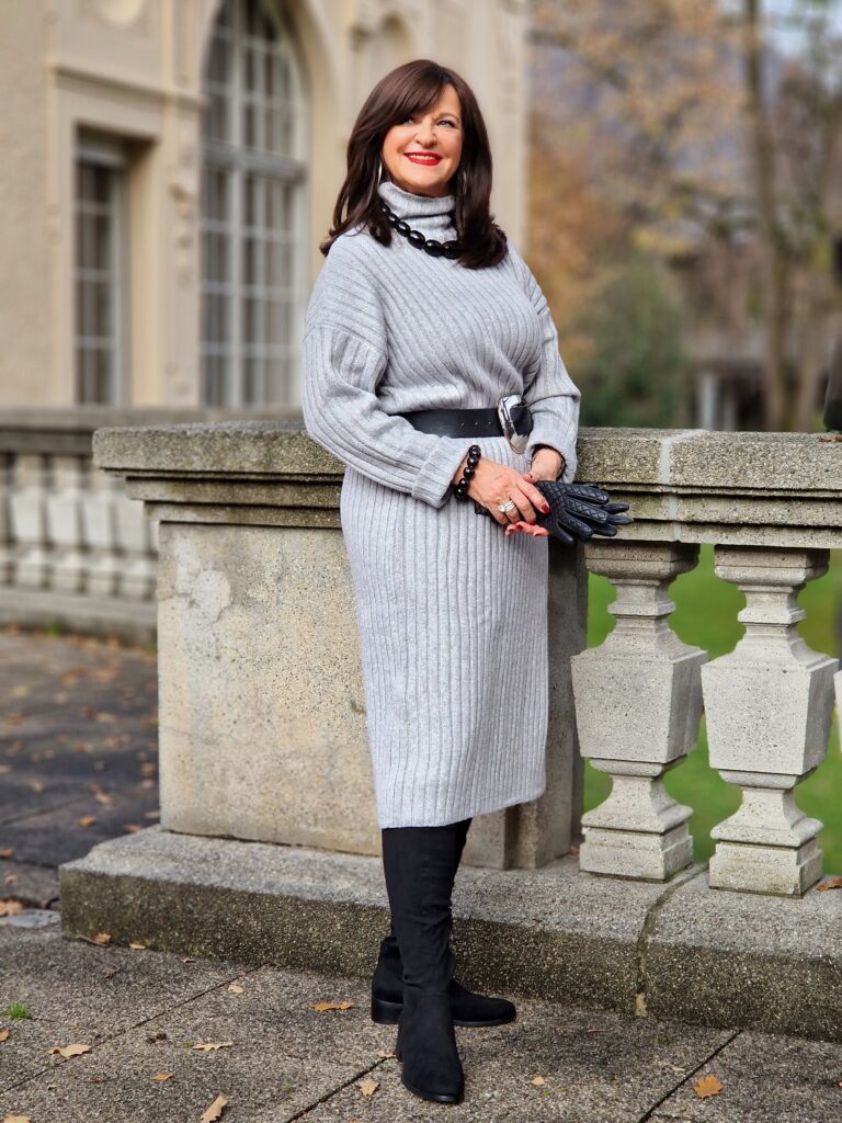 ich besitze noch kein Strickkleid, aber heute hast Du mich überzeugt und ich habe mir bei dem Anbieter eines bestellt, um es für wenig Geld einmal auszuprobieren. Die Accessoires und die Stiefel dazu habe ich schon im Schrank. Ich bin die letzten Winter einfach sehr „hosenlastig“ geworden.