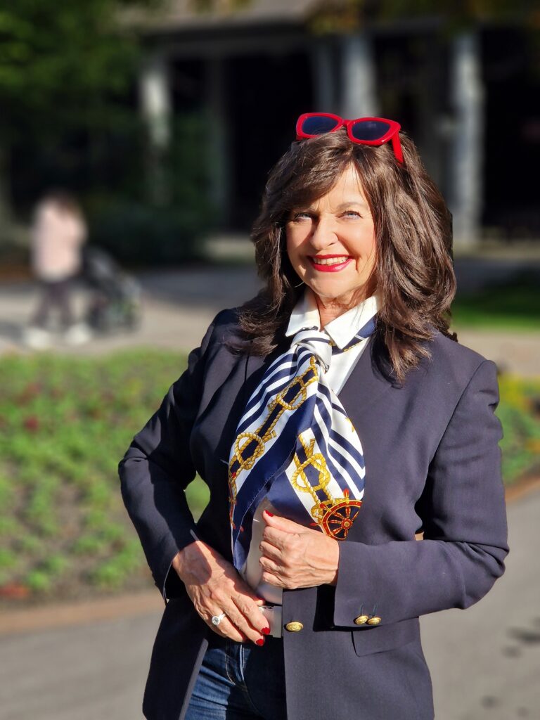 - Farben und Muster: Setze auf zeitlose Farben wie Grautöne, Marineblau oder Beige. Für einen modischen Akzent sind auch gemusterte Schals in klassischen Marinemuster oder zarten floralen Prints ideal. Animalprints sind so angesagt wie schon lange nicht mehr. Auch ich habe einige Schals mit diesem modernen Print in meiner Schalschublade.