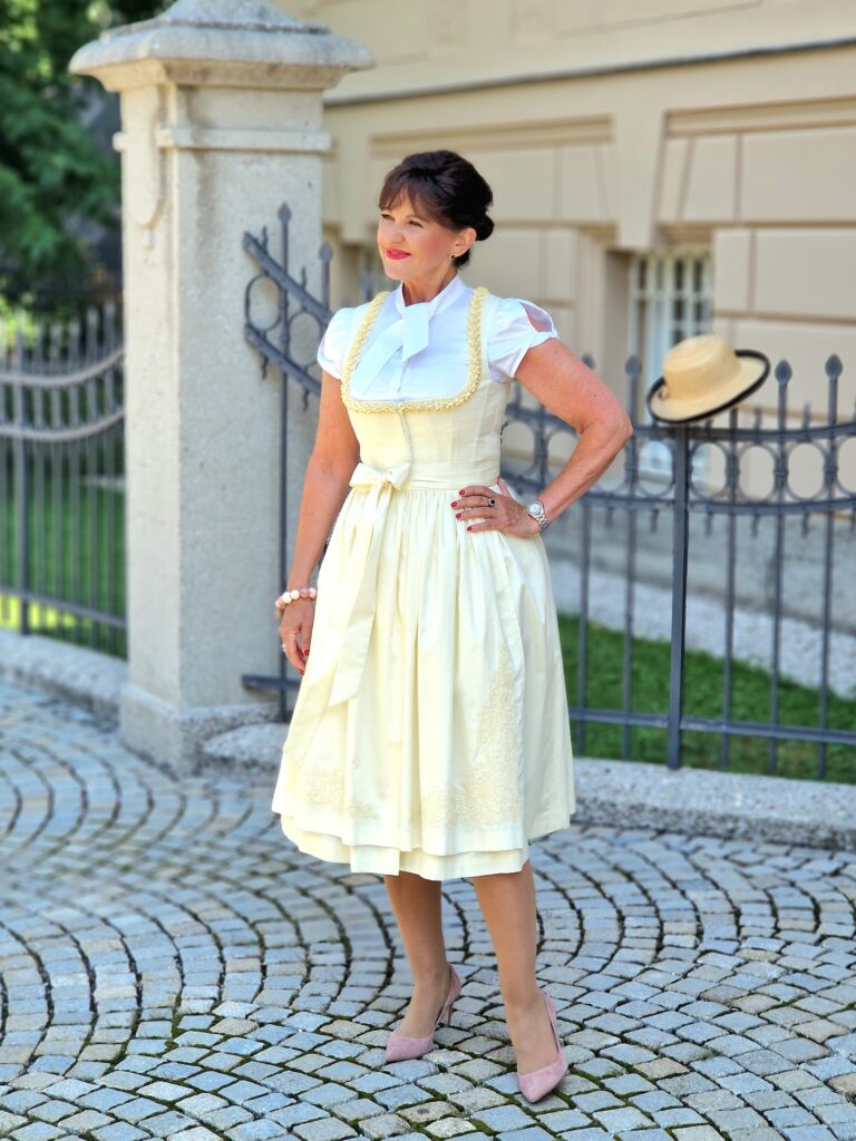 Das gelbe Dirndl passt zum Frühling einfach einmalig. Gelb habe ich vor zwei Jahren für mich entdeckt und diesem Frühling habe ich eine große „Gelbvorliebe“, nach Rosa, Pink und Blau.