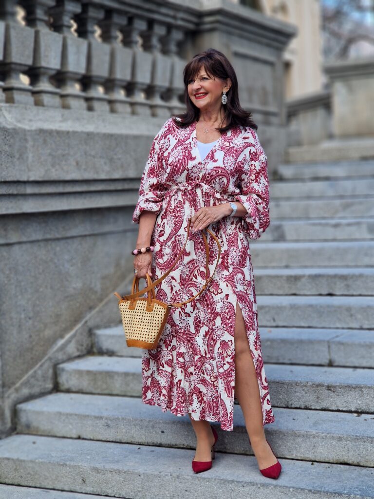Zarte Farben verkörpern die Sanftheit, Leichtigkeit und die Schönheit des Neuen. Ein luftiges Kleid mit Paisley-Muster ist passend für den Start in den Frühling. Geeignet ist das Kleid für den Spaziergang in blühenden Parks, das Osterfrühstück im Sonnenschein bei Freunden oder ein entspanntes Zusammensein mit der Familie. Ein Kleid, mit dem wir eine gute Figur machen. Der raffinierte Schlitz ist beim Gehen ein besonderer Hingucker.