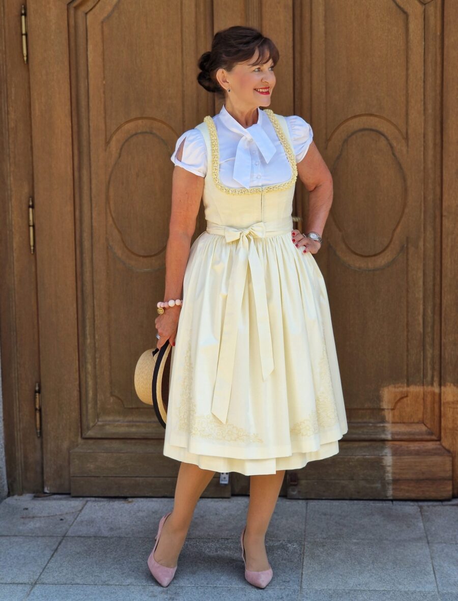 Das gelbe Dirndl passt zum Frühling einfach einmalig. Gelb habe ich vor zwei Jahren für mich entdeckt und diesem Frühling habe ich eine große „Gelbvorliebe“, nach Rosa, Pink und Blau.