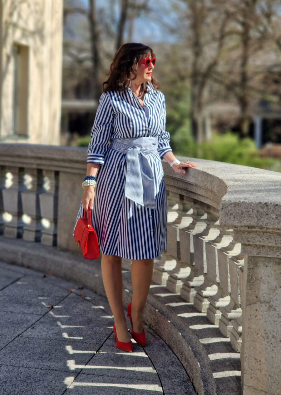 …Danke für diesen tollen Blog ! Alle Outfits sind klasse …und ich habe mich direkt inspirieren lassen und mein Blau-weiß gestreiftes Hemdblusenkleid heute Morgen angezogen 😄 🤍🩵🤍🩵