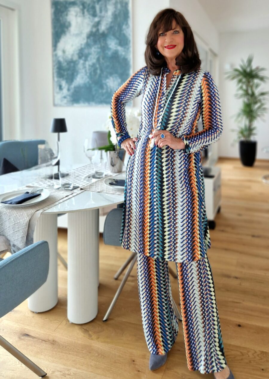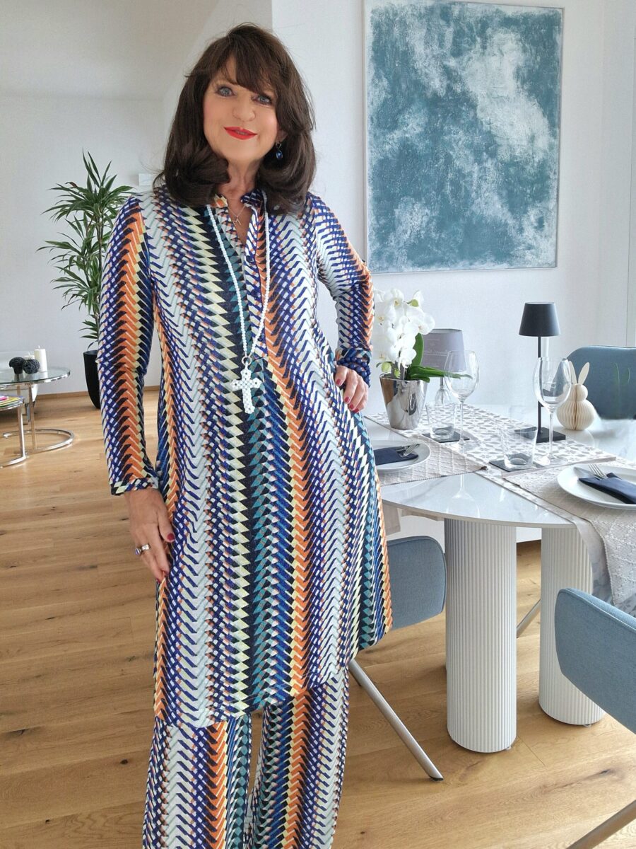 Am letzten Tag der Woche heißt es entspannen, aber bitte mit Stil! Mein Zweiteiler ist eigentlich in der Basis ein Kleid und eine Hose. Heute bin ich mutige und kombiniere das Kleid mit der Hose zusammen. Der auffällige Print ist ein Hingucker und gleichzeitig absolut bequem. Für einen entspannten Sonntag zu Hause genau der richtige Look.
