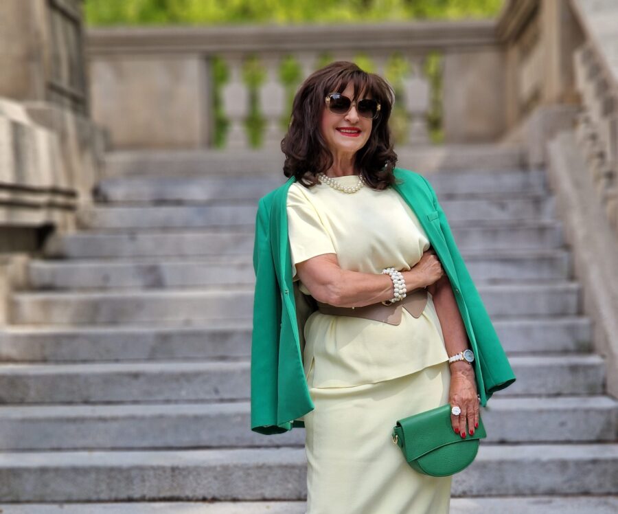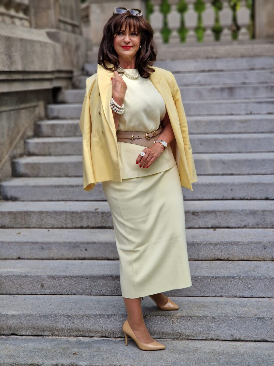In jeder Saison gibt es Trendfarben. Die aktuelle Saison wird von Mocha Mousse, Puderrosa und Buttergelb besonders dominiert. Bis vor einiger Zeit konnte ich mir gar nicht vorstellen, dass mir Gelb bzw. Buttergelb so gut gefällt. Vor vielen Jahren hatte ich sogar einen Hosenanzug in dieser Farbe, und zwar mit passender Weste und Knöpfe in Silber. Leider habe ich diesen Hosenanzug bei meiner großen Kleiderschrank-Aufräum-Aktion vor meinem Umzug im letzten Jahr entsorgt. Ja, der Gedanke alleine ist „schmerzlich“.