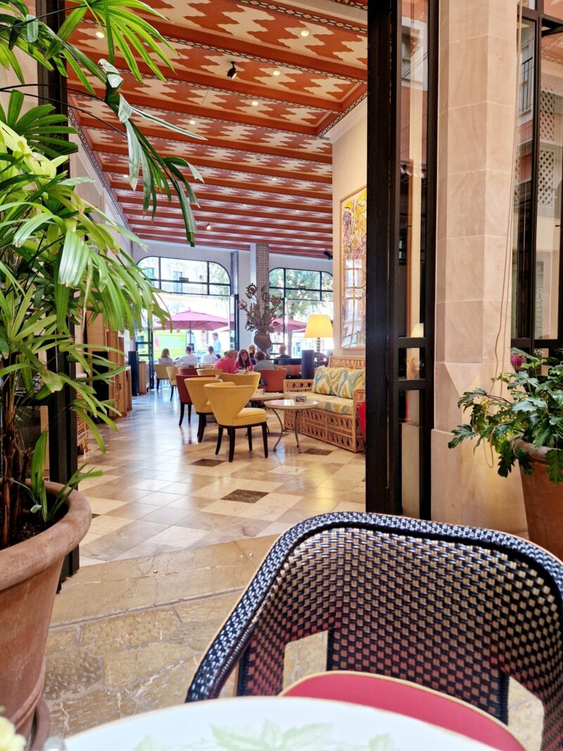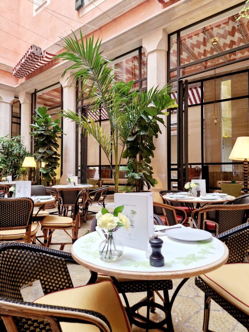 Schon beim Betreten des Hotel Cappuccino, das früher Hotel Mama hieß, wusste ich: Hier bin ich richtig, genauso habe ich es mir vorgestellt. Das luxuriöse Boutique-Hotel liegt mitten in der Altstadt von Palma direkt an der Plaza de Cort, umgeben von kleinen Gassen, Cafés und Geschäften. Durch sein eklektisches Design von Jacques Grange verbindet es mediterranen Charme mit Pariser Eleganz.