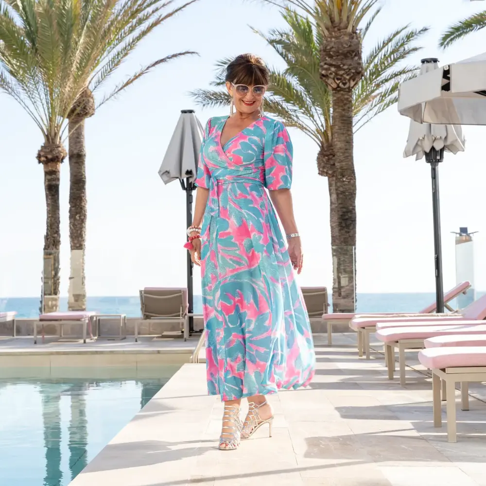 Ein Kleid, das feminine Eleganz und sommerliche Leichtigkeit vereint: Mein langes Sommerkleid betont die Figur auf besonders schmeichelhafte Weise. Der Brustbereich ist sanft anliegend und formt eine schöne Silhouette, während der Schnitt in eine fließende A-Linie übergeht – ideal, um Bewegungsfreiheit und Stil zu verbinden.