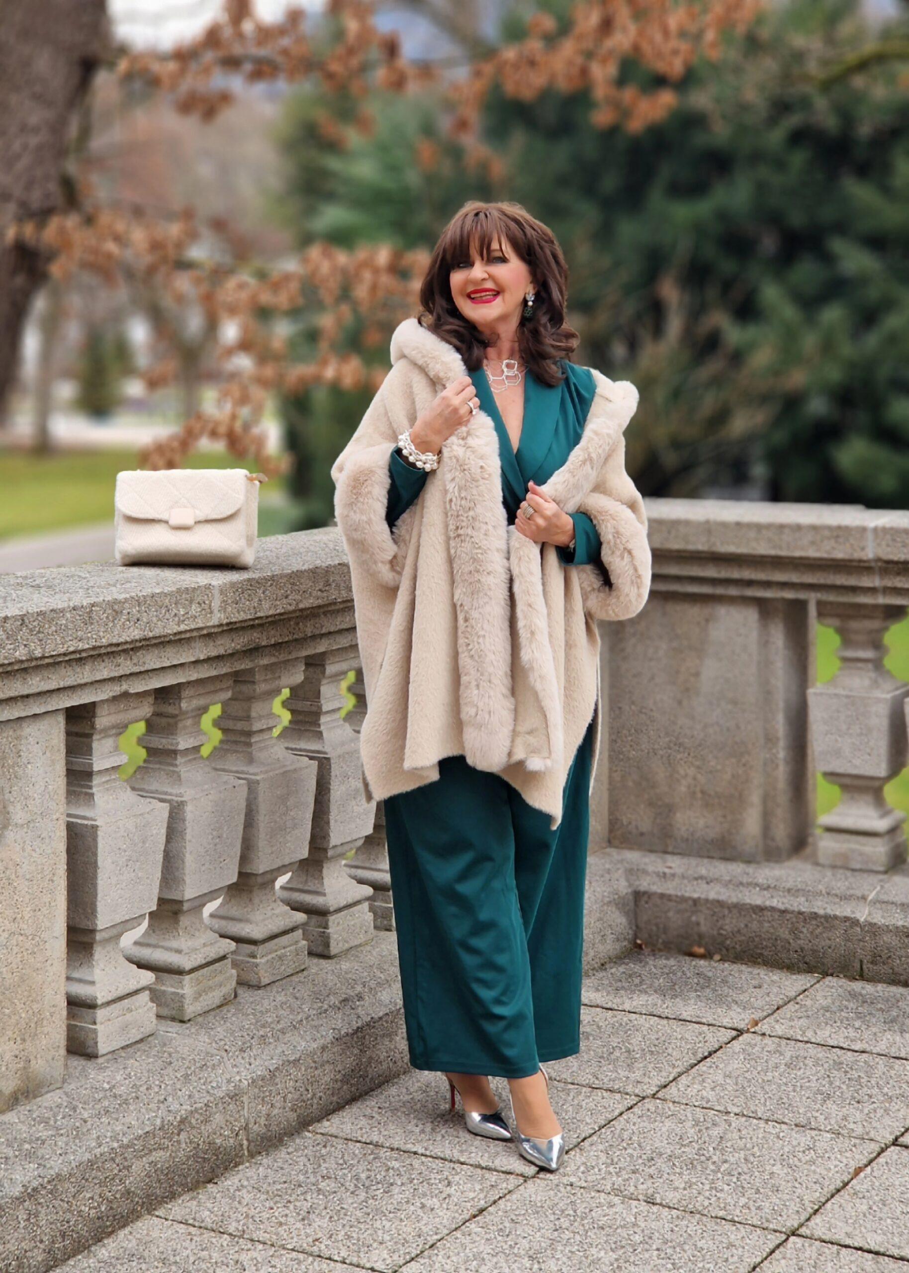 Mit dem hellen Cape, was ich aktuell so gerne trage, verleiht des dem Jumpsuit eine elegante Note. Dieser Look ist perfekt für die Geburtstagsfeier, für die Feiertage oder einen Theaterbesuch. Und ganz bestimmt trage ich ihn an einem der letzten Tage des Jahres zu meinem eigenen Jubiläum am 29.12. – dazu mehr am Ende des Beitrags.