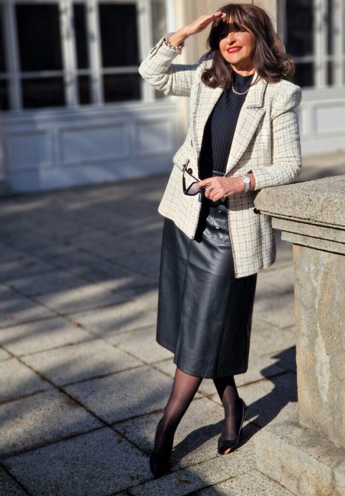 LOOK 3: Bouclé-Blazer in Schwarz-Weiß – französischer Chic für jeden Tag