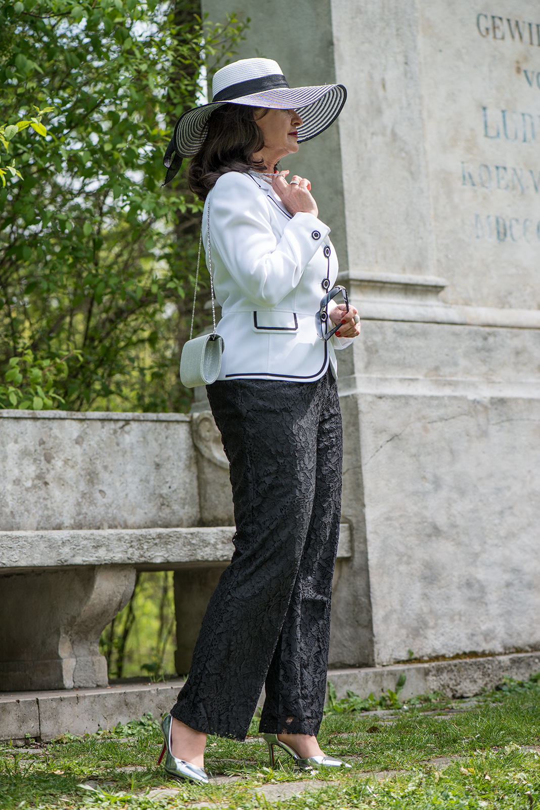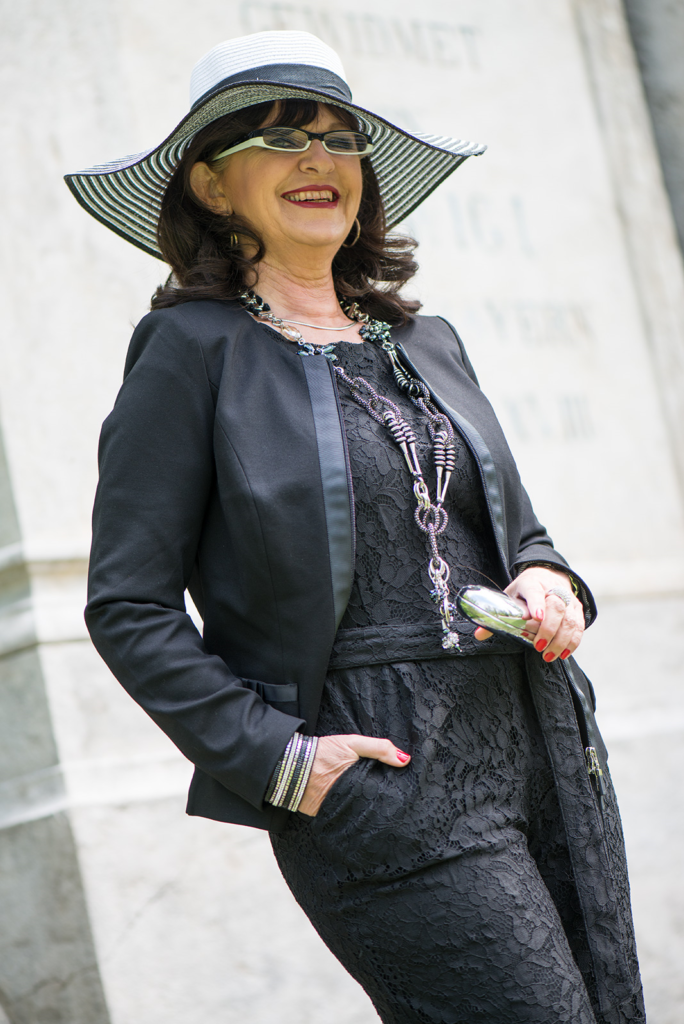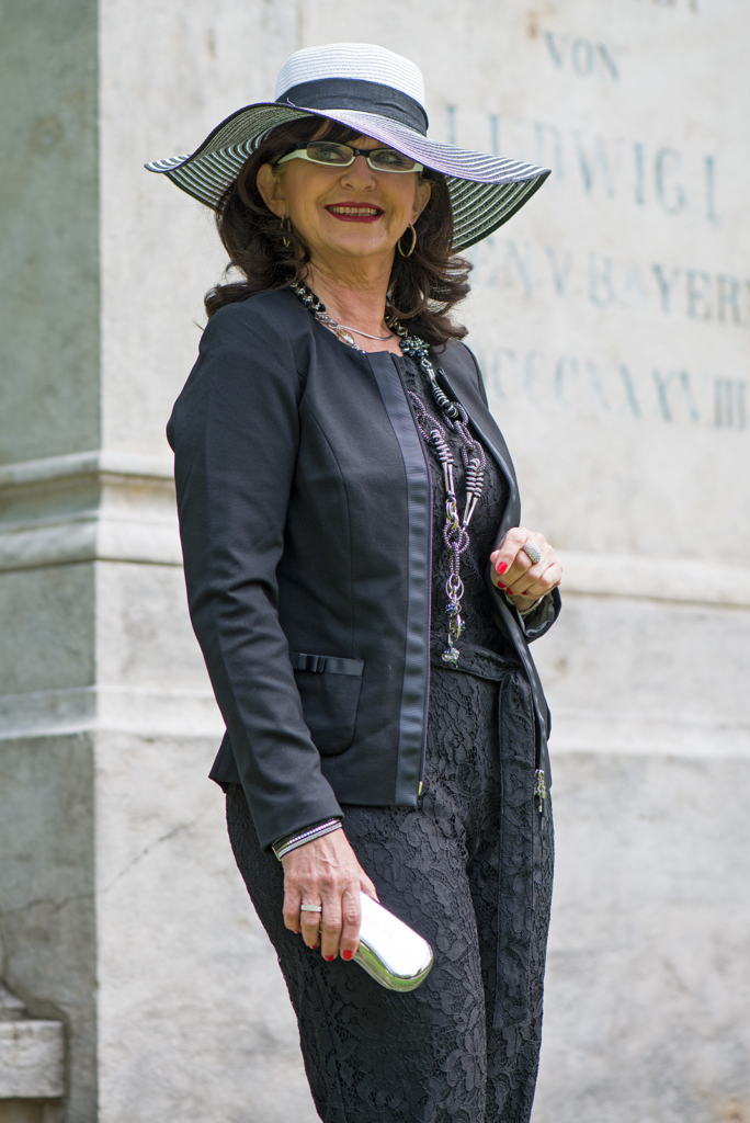 Sehr schick liebe Martina. Der Jumpsuit aus Spitze gefällt mir sehr gut an Dir, vor allem mit dem schwarzen Blazer zusammen. Hüte finde ich bei Dir ebenfalls sehr schön.